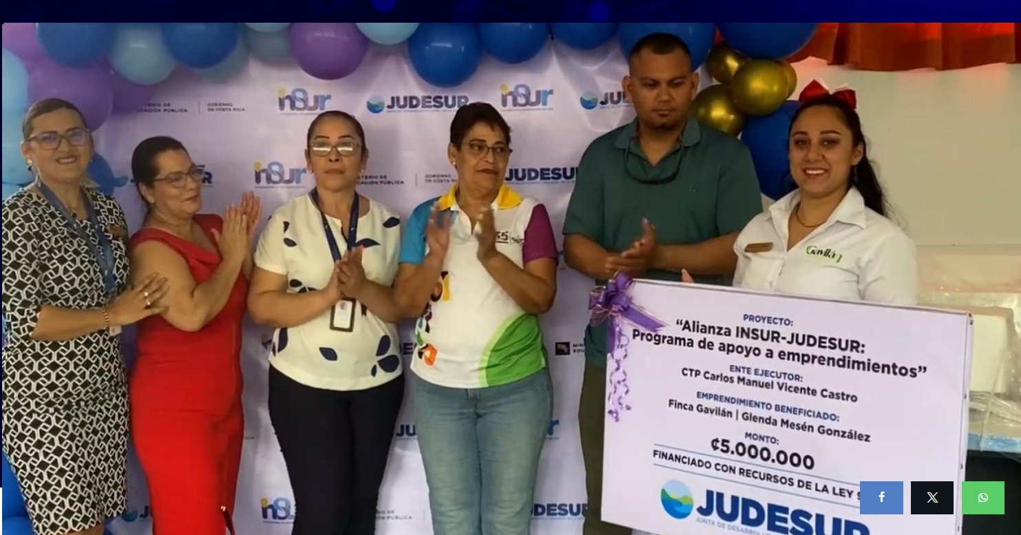 Todos Judesur entrega aportes a tres emprendimientos. Convenio INSUR – JUDESUR – Proyecto N° 263-01-NR ALIANZA INSUR. Cantón GolfitoJudesur entrega aportes a tres emprendimientos. Convenio INSUR – JUDESUR – Proyecto N° 263-01-NR ALIANZA INSUR. Cantón GolfitoVer... leer más
